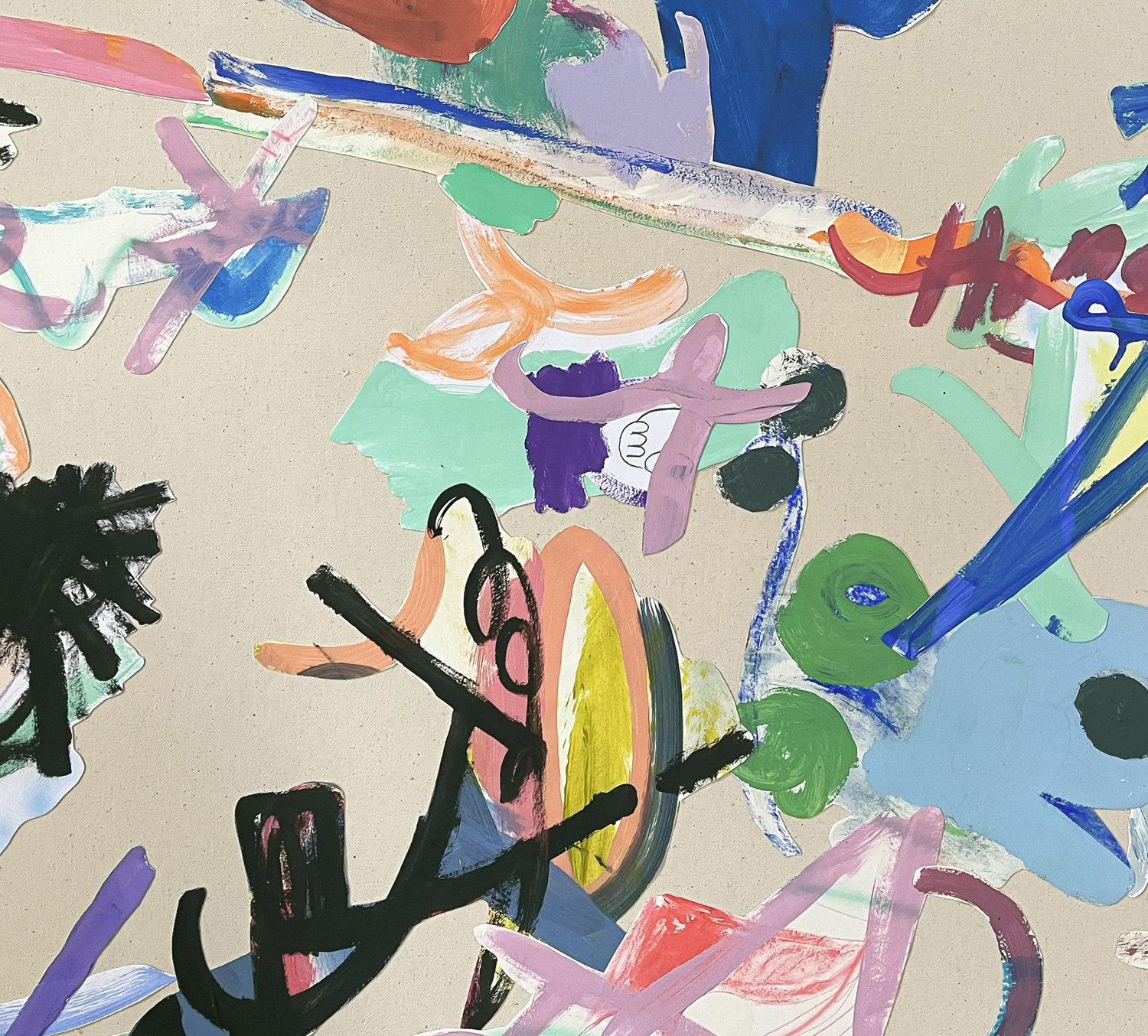 Gouache, acrylics, graphite and oil pastels on paper, cut out and glued onto canvas. 100x150cm, 2025